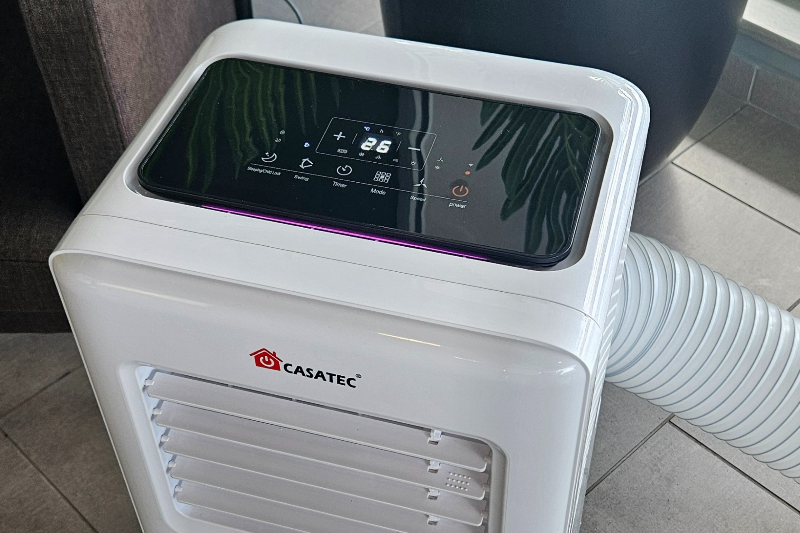 El aire acondicionado portátilUltraDry 500 4 en 1 de Casatec extrae el aire del ambiente y lo hace circular por un serpentín que enfría o calienta según el modo elegido. Además, puede deshumidificar hasta 24 litros diarios, reduciendo la humedad y mejorando la calidad del aire. El aire tratado regresa a la habitación, mientras que el excedente de calor y humedad se expulsa al exterior mediante una manguera. Con controles digitales, temporizador y conectividad WiFi, ofrece climatización completa, práctica y eficiente en espacios de hasta 25 m².