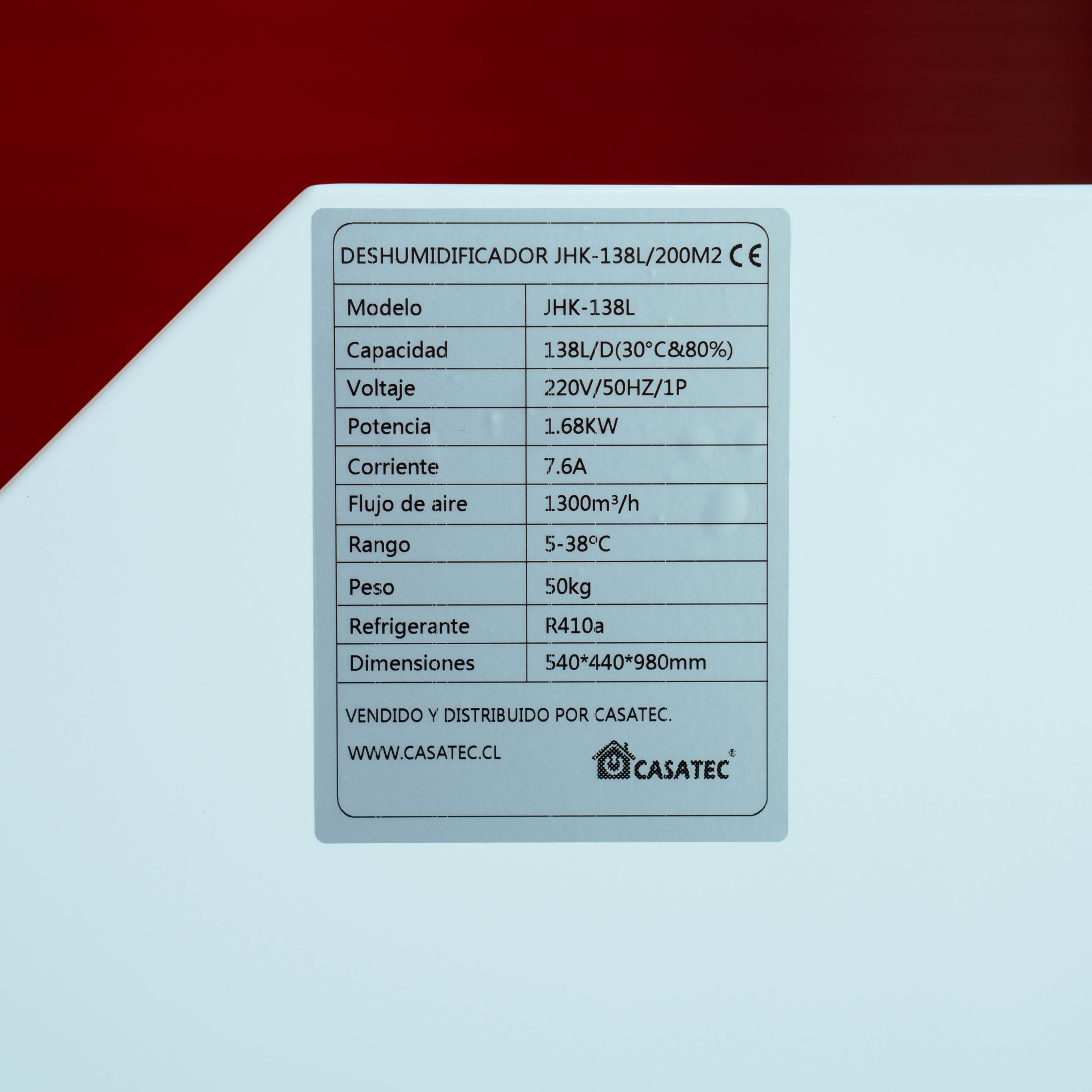 FICHA TÉCNICA DESHUMIDIFICADOR INDUSTRIAL JHK-138L